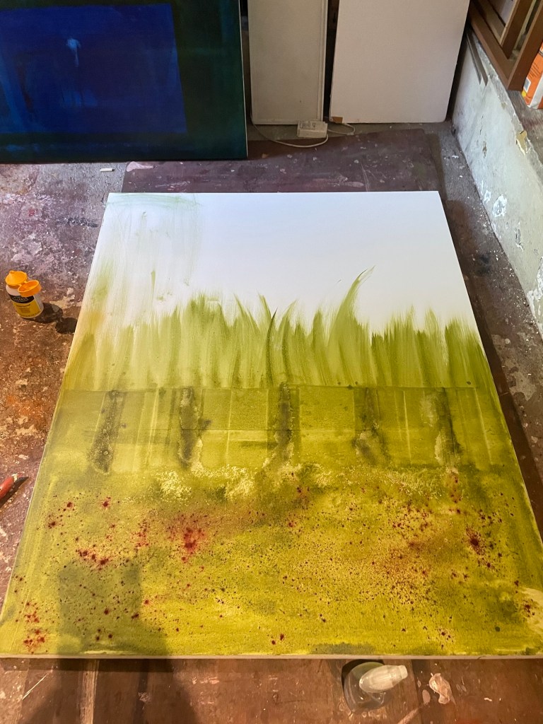 The trouble is things can go wrong when working directly. Like in the painting here – the different greens.