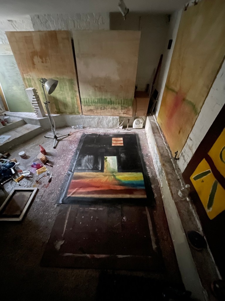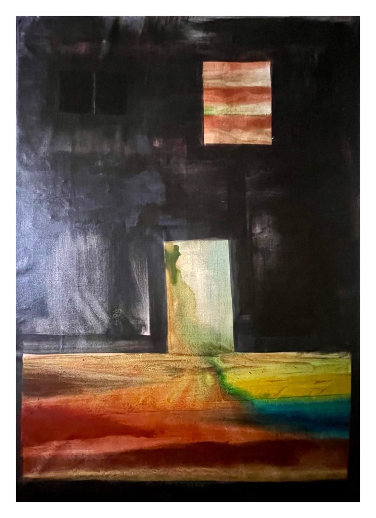 Maybe I’ll start naming paintings Titled for a change. Bit silly. Anyway Im quite pleased with the textures here. Doing more with these windows. But i also feel a need to dilute this kind of density, or saturation.