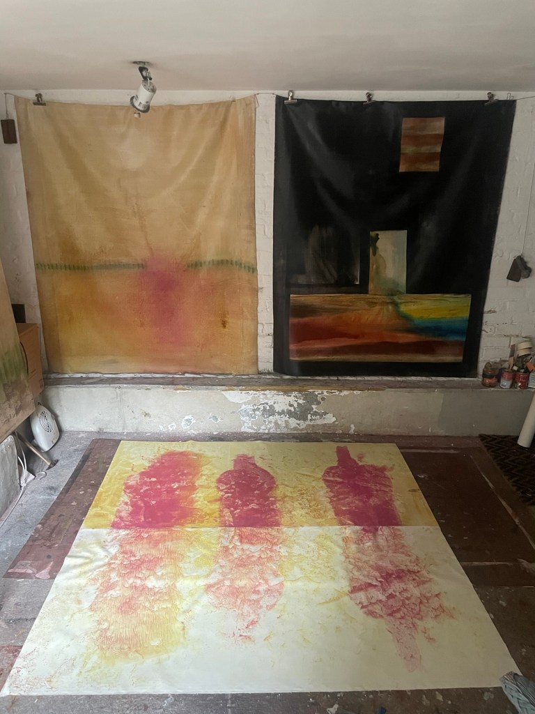 Why do i mix colours directly on the canvas? When I was at City and Guilds Art School learning stone carving I resisted copy carving stuff. That’s where you make drawings, clay and plaster versions of what you then copy. It’s very controlled and necessary for commission work as everything has to be approved by the client. But i was interested in direct carving – starting with a vague idea and seeing what happened.