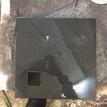 when I work I am demolishing structure, attacking solid form and creating dust clouds. The dust cloud is made of the material I am attacking and is equivalent to it. If i am sandblasting a me shaped impression in stone or paper I am creating a dust cloud shaped ‘me’ in the atmosphere. Some of that dust goes onto me and some goes into me.