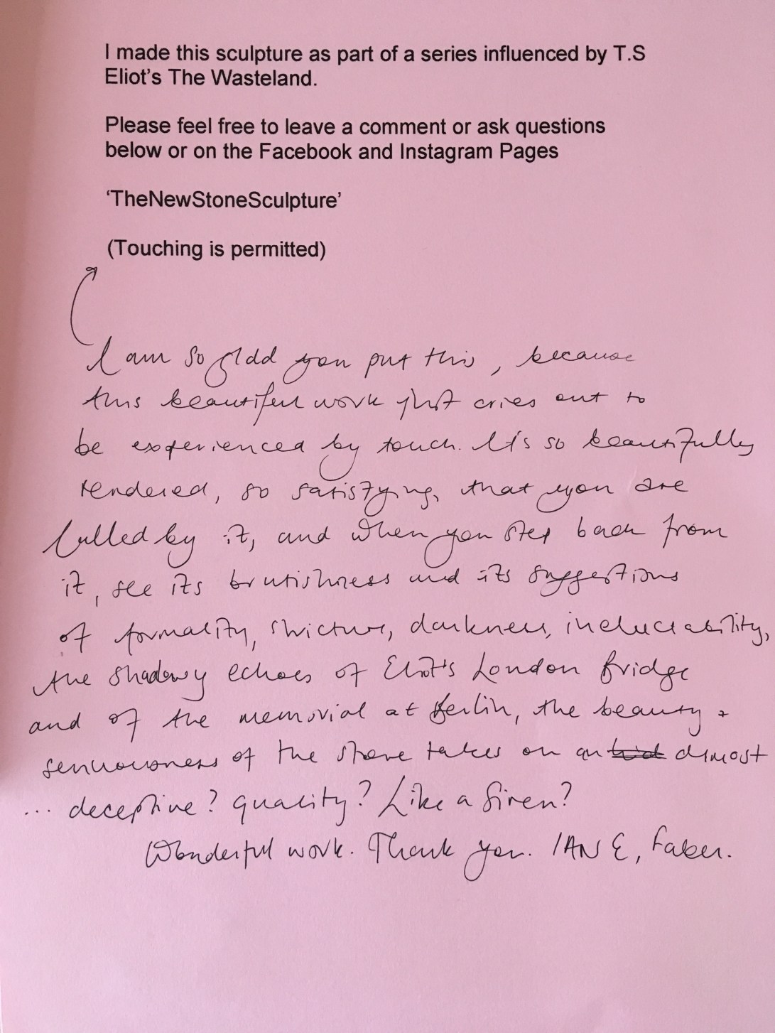 Philosophy is the love of knowledge. Art thrives in not-knowing. In the Uncertain. Am I too certain in what I do? It might come across like that. The shapes are definite. Stone is a definite material. I have a definite skill set. But I am using all of these things to express and probe and narrate and investigate and interrogate and research subjective and objective Uncertainty. Conversational. If one used a less certain material to explore uncertainty, that is, a deliberately uncertain material, one would be making a certain, closed and non-conversational statement and would be in danger of being literalist.