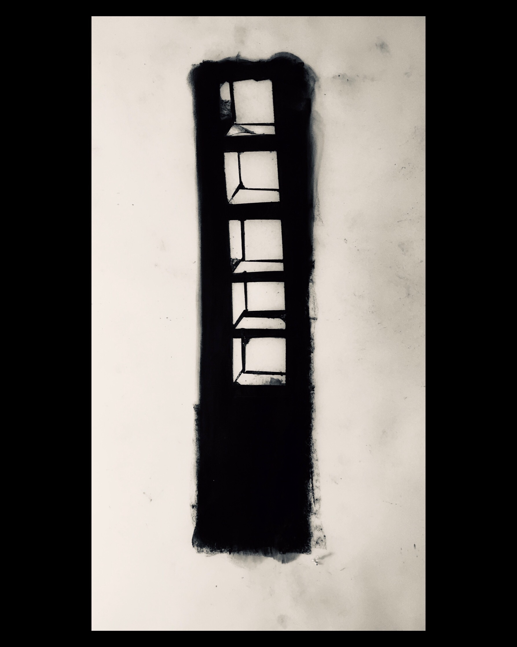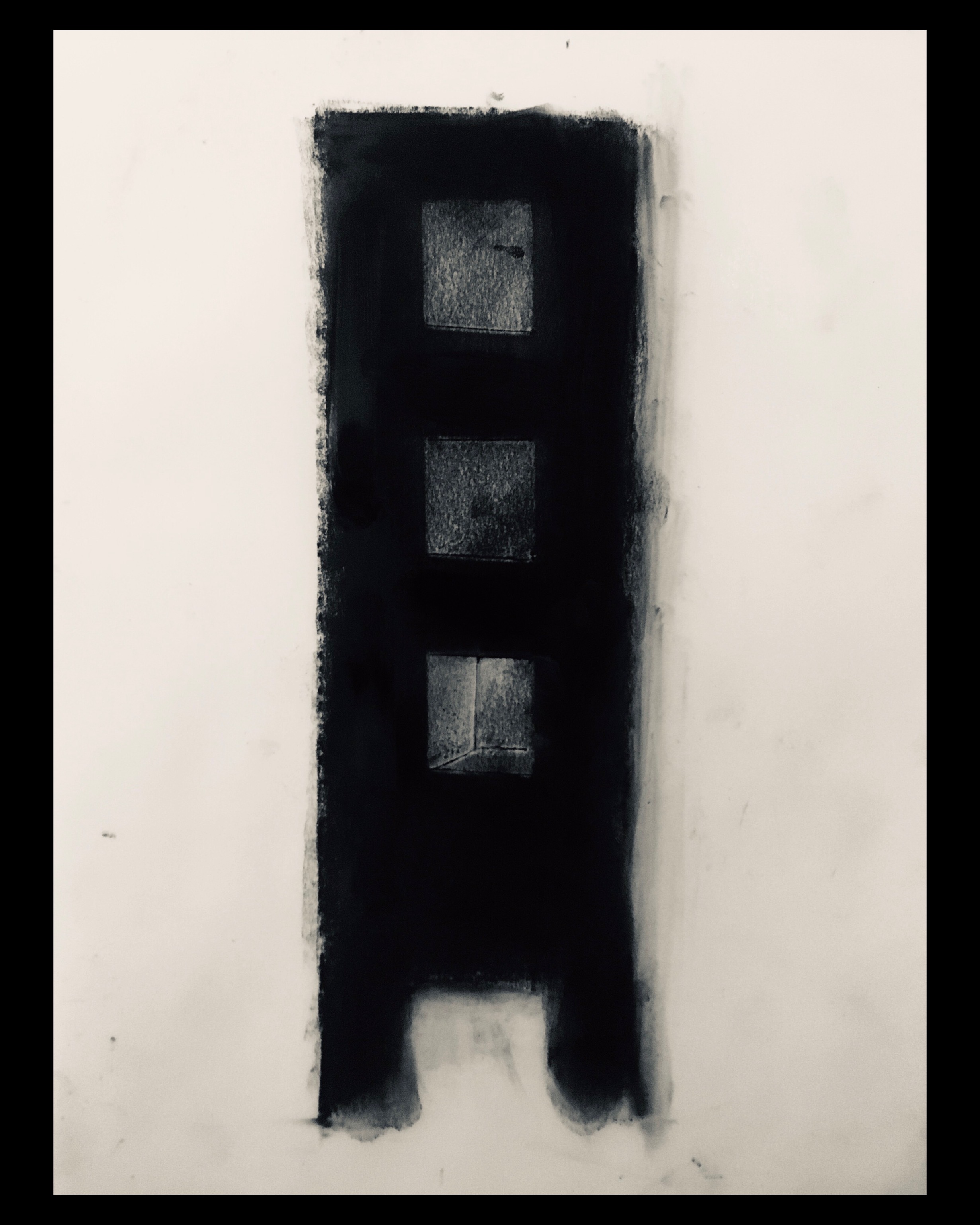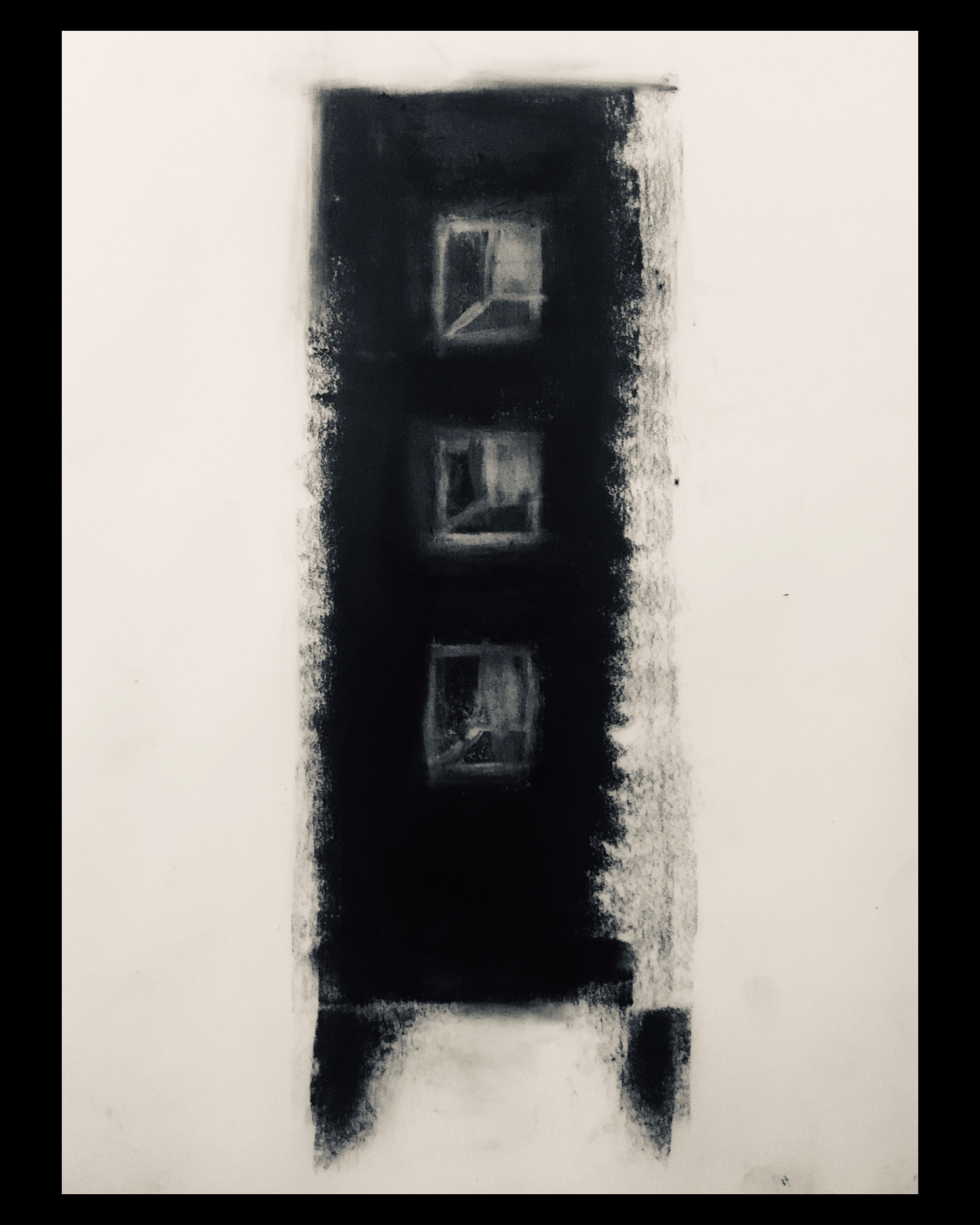 Paper, masking tape, compressed charcoal, stanley blade, sprayfix.