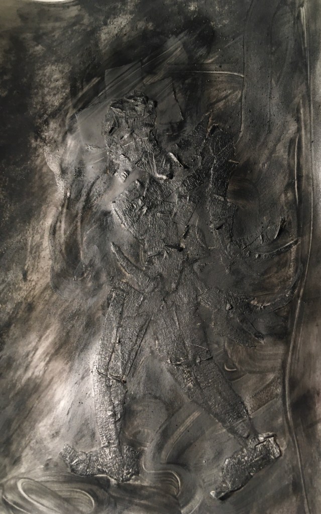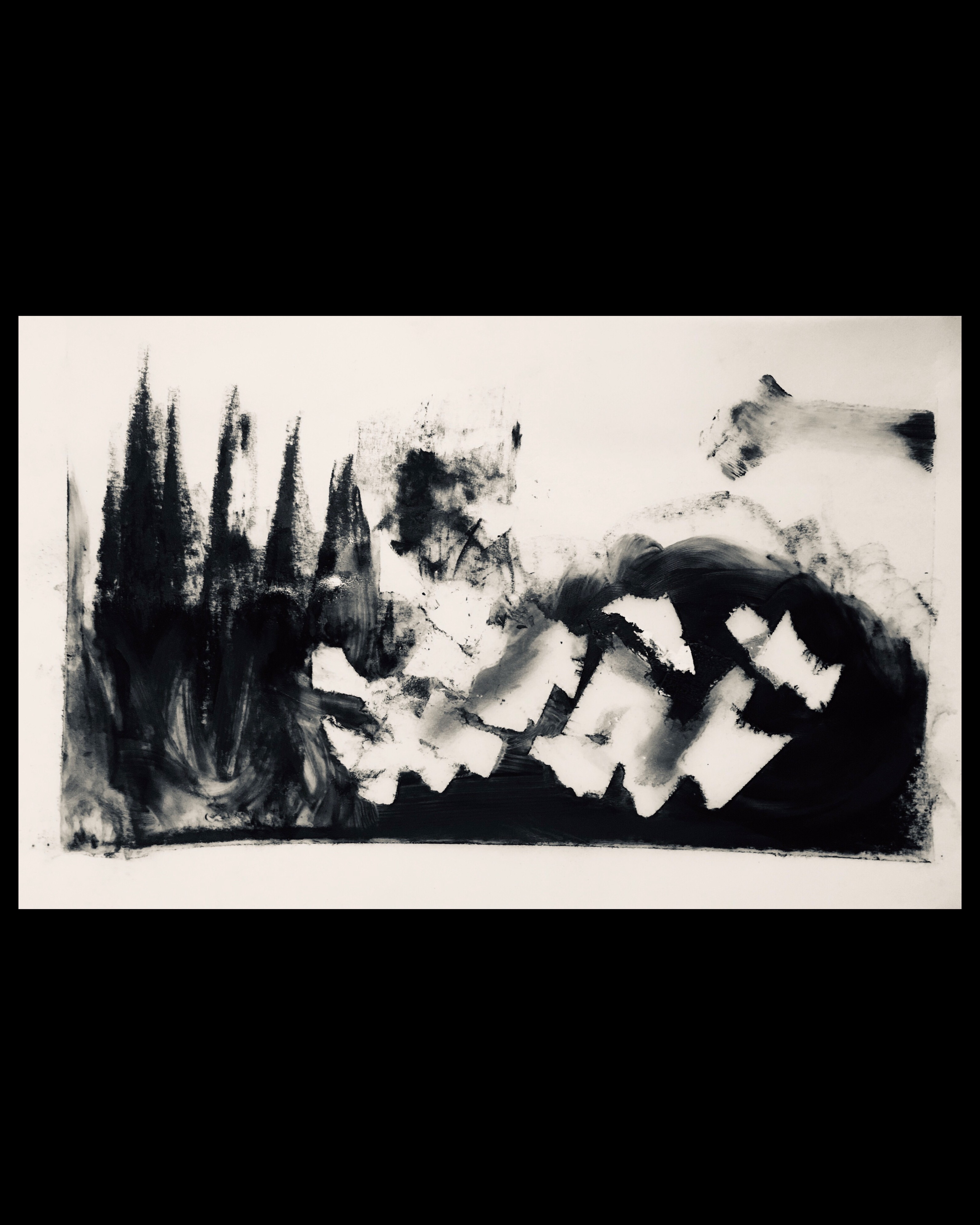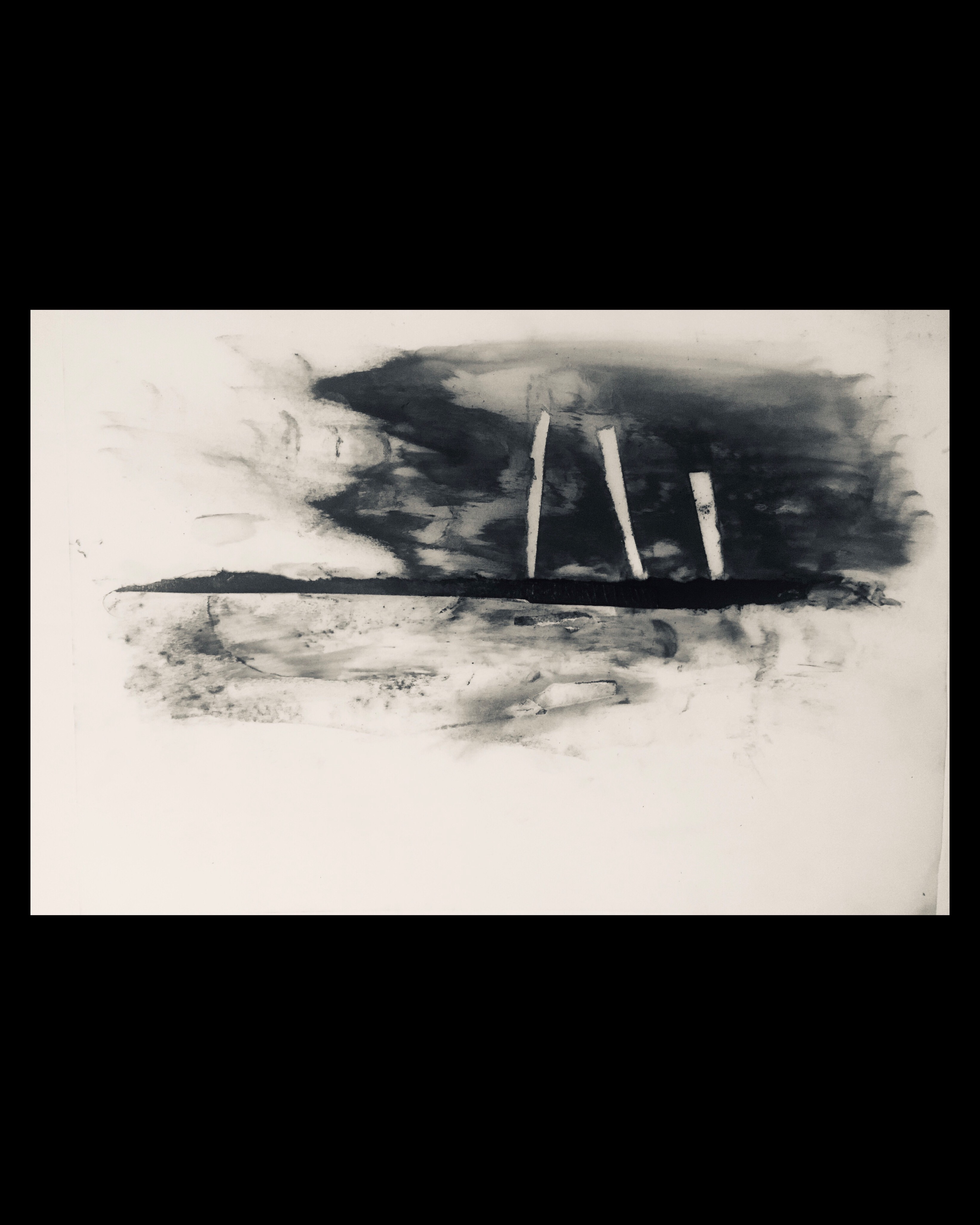 I grated compressed charcoal over it and spray fixed until liquid, painting with my fingers.