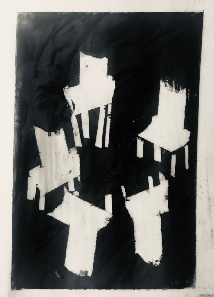 Its great to be able to play with materials like this. The excitement of making an image out of mess and detritus, without intentionality, is for me a great thing.